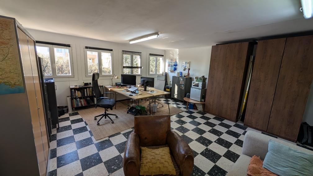 Quartier de la Pétanque proximité Port et Centre-ville, grand bureau de 33,84 m² sis au 1er et dernier étage du bâtiment (sans ascenseur); huisseries double-vitrage, climatisation réversible, convecteurs, sanitaires en partage sur pallier.